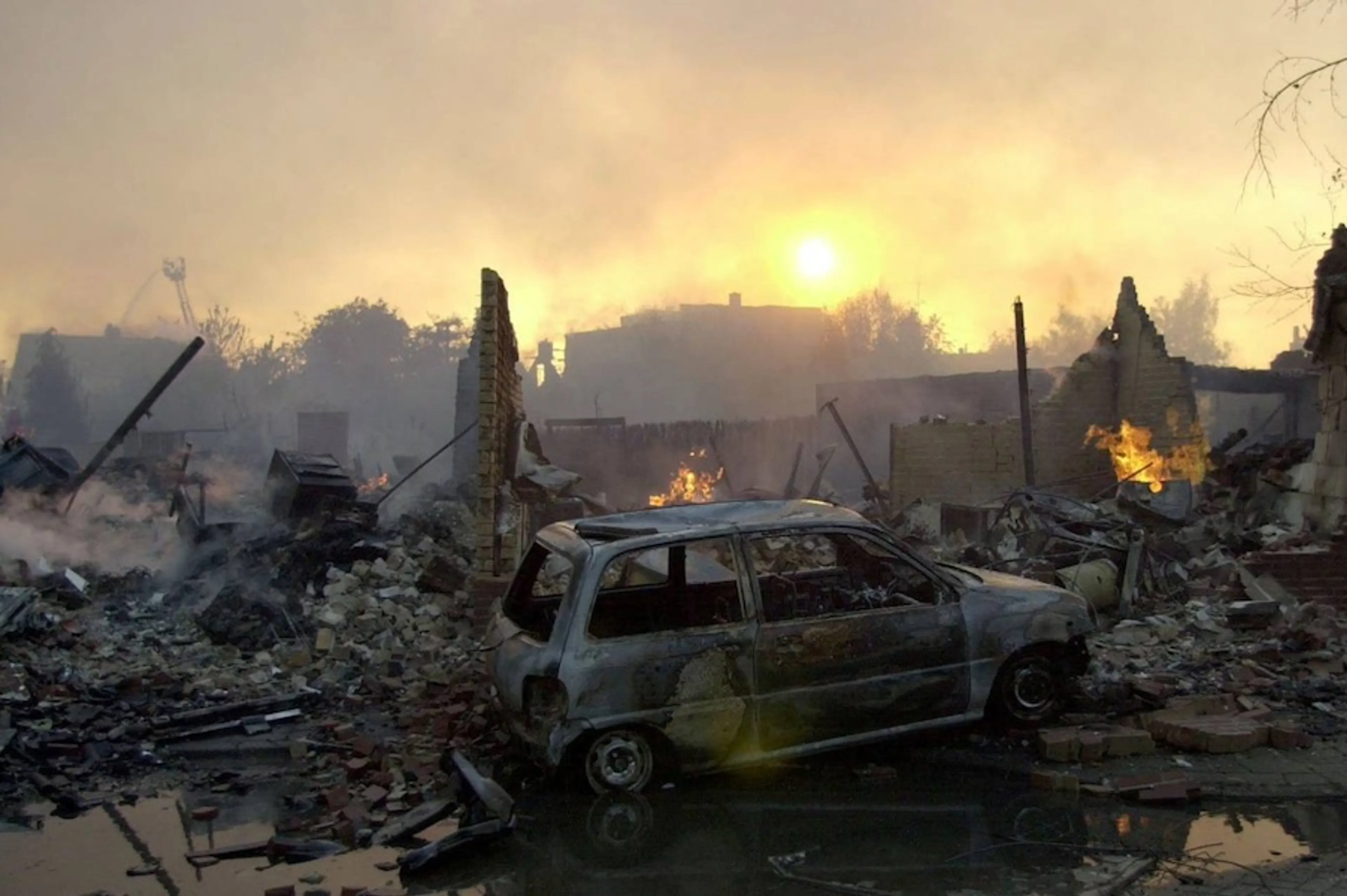“We kwamen aanrijden en zagen overal mensen verward naar de gesprongen ruiten van hun huizen kijken. Een jongen van een jaar of twintig rende langs. Tegen de blauwe lucht was vuurwerk te zien en ik weet nog dat ik zei: ‘Wat jammer dat het nu ontploft. In het donker is het veel mooier, dan heb je er nog wat aan.’ En precies op dat moment kwam de tweede explosie. We hoorden een enorme knal en voelden een enorme drukgolf door de auto gaan. De ruiten van de auto begaven het en ik dacht dat mijn lichaam uit elkaar zou spatten door de druk. Toen ik opkeek, zag ik de jongen die eerder langsrende door de lucht vliegen en met een klap naast de politieauto op het asfalt vallen. Aan de grauwe blik in zijn ogen wist ik meteen dat hij niet meer leefde en dat we niets meer voor hem konden doen. Ik keek mijn collega aan en zei: ‘We gaan dood.’”