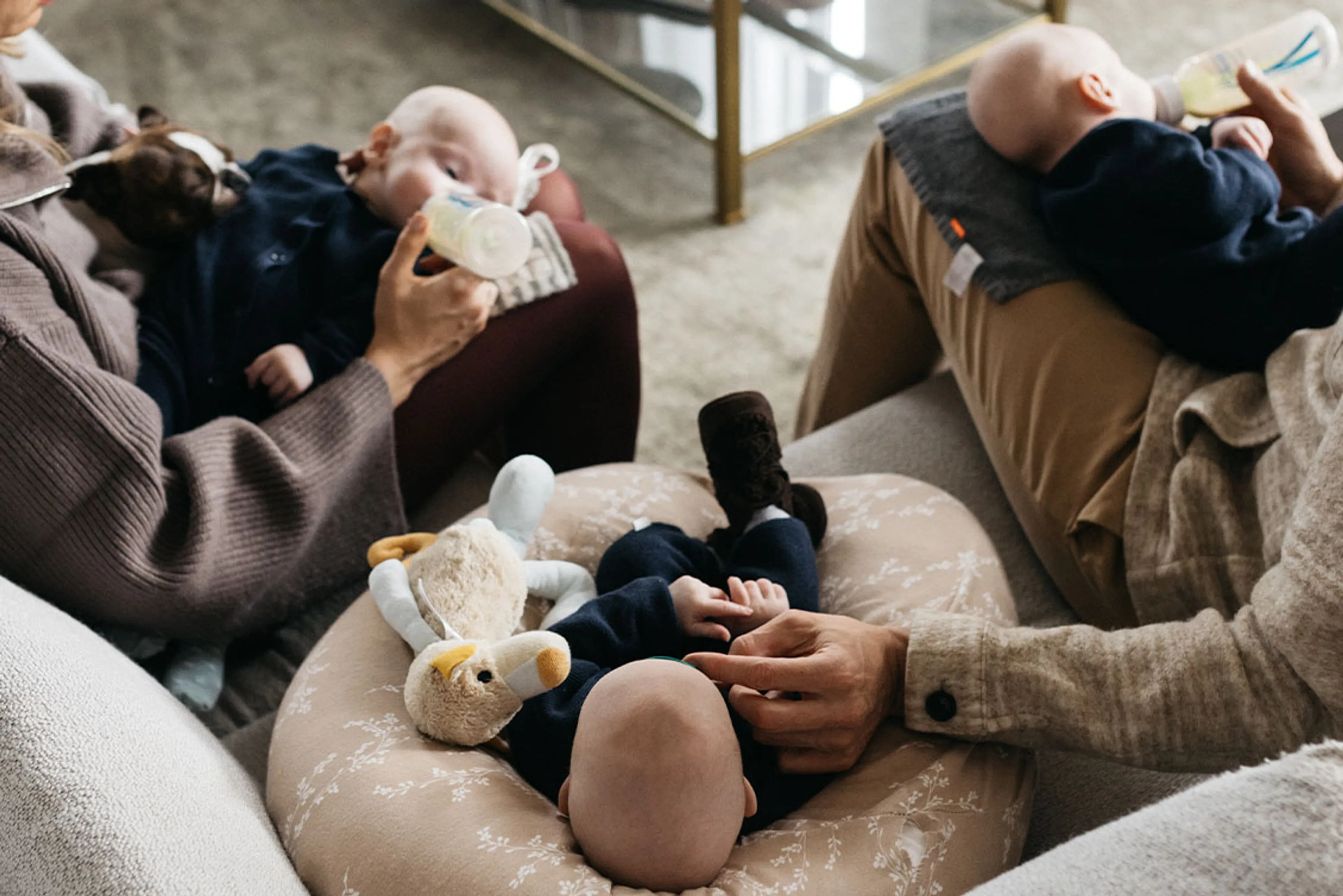 Veel mensen vragen zich af hoe we de jongens uit elkaar houden. Ik kan je vertellen: dat lukt niet altijd, haha! Mijn man heeft ze echt al heel vaak door elkaar gehaald. Ik heb er ’s nachts ook weleens één in het verkeerde bedje teruggelegd. De armbandjes met hun namen erop zijn een uitkomst. Op hun speentjes staat ook een naam, maar daar kun je niet op afgaan. Als Teus huilt en de speen van Saul ligt het meest dichtbij, krijgt hij die. Maar hoe beter je de jongens leert kennen, hoe meer je de verschillen ziet: Cees is de grootste, Saul heeft een ooievaarsbeetje boven zijn ogen. Zo houden we ze gemakkelijk uit elkaar. Ik heb veel zin in de toekomst. Ik zie uit naar ons gezin waarin de jongens opgroeien, er meer interactie komt, we rituelen ontwikkelen en vakanties met elkaar doorbrengen. Maar eerst heb ik vooral heel veel zin om weer goed te kunnen slapen.”