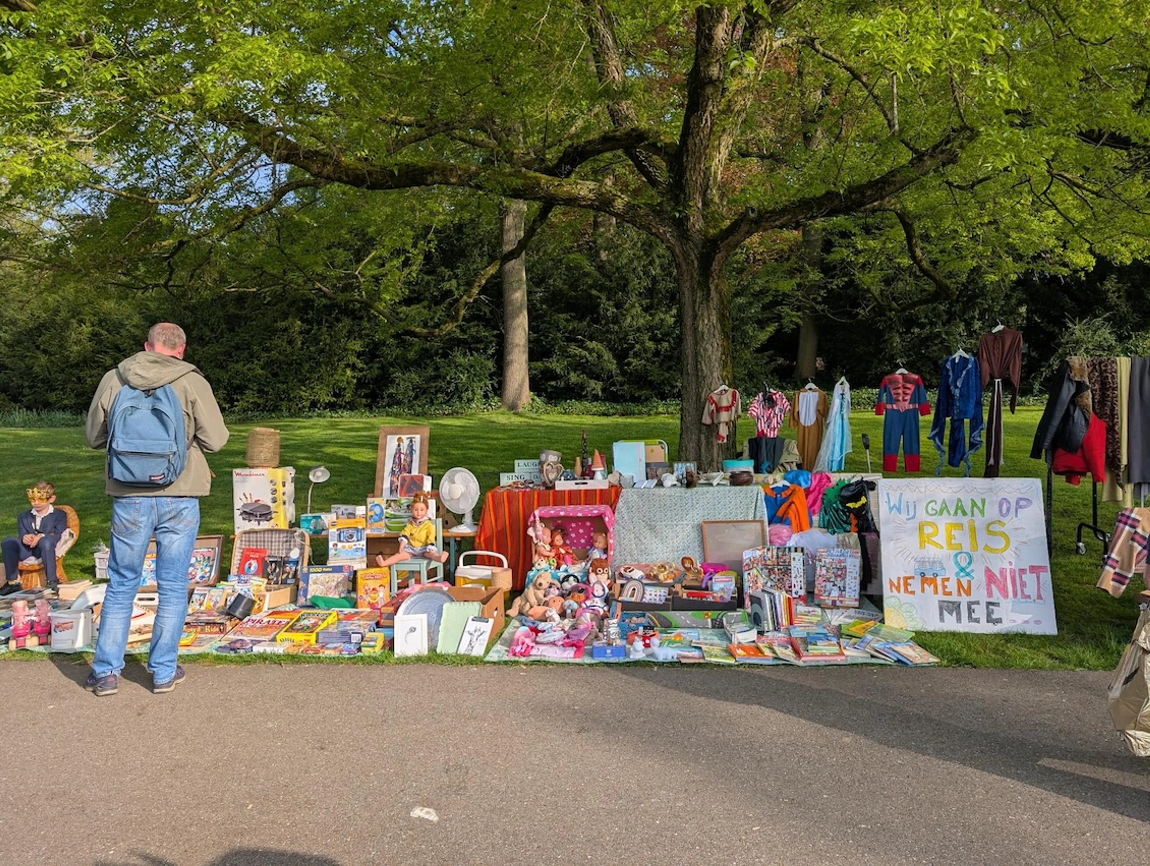 We besloten ter plekke de prijs te bepalen. Daar leerden we meteen een leuke les. Als wij €5 vroegen, werd er €2,50 geboden. Als we €1 euro vroegen, 50 cent. Aan het einde van de dag zetten we er een bordje bij: ALLES GRATIS! Daardoor raakten we bijna alle spullen kwijt. Maar wat zo mooi was, is dat mensen ons toen opeens geld toestopten.