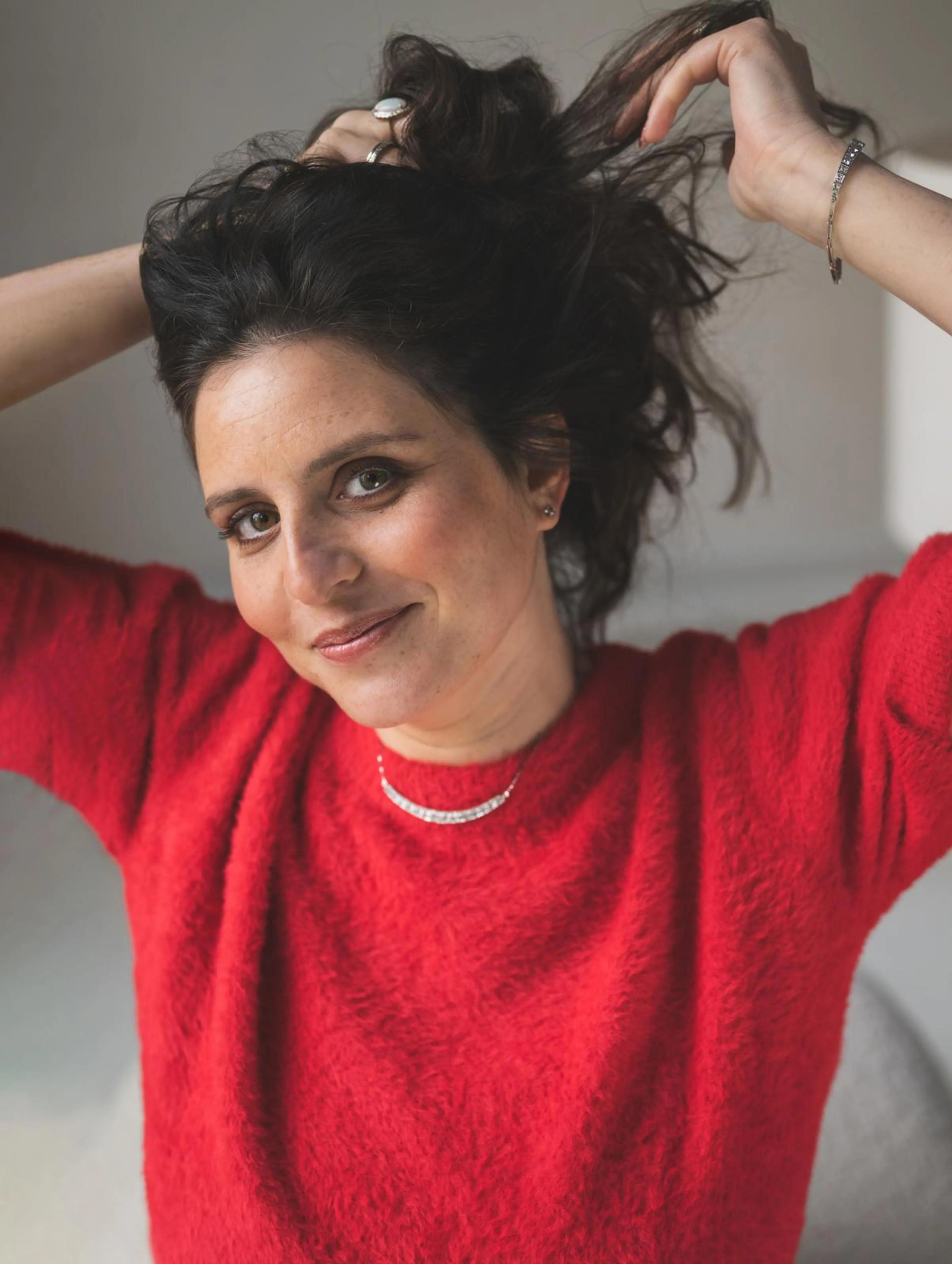 “Ik kan me niet voorstellen hoe het is om níét Joods te zijn. Het zit in alles: ik ben traditioneel Joods opgevoed, zat op Joodse scholen en groeide op in een volledig Joodse wereld. Toen ik naar Amsterdam verhuisde, ontdekte ik zoals velen bij hun volwassenwording dat de wereld groter is dan mijn eigen bubbel. Dat heeft mijn identiteit verbreed, maar niet veranderd. Ik ben niet religieus, maar het jodendom is ook een volk en een cultuur. Ik neem mee wat bij me past en laat los wat te beperkend voelt. Soms merk ik dat ik in het debat word gereduceerd tot ‘de Jood’. Dat vind ik een vernauwing van mijn identiteit; ik ben tenslotte ook nog vrouw, moeder, zus, dochter en journalist.”