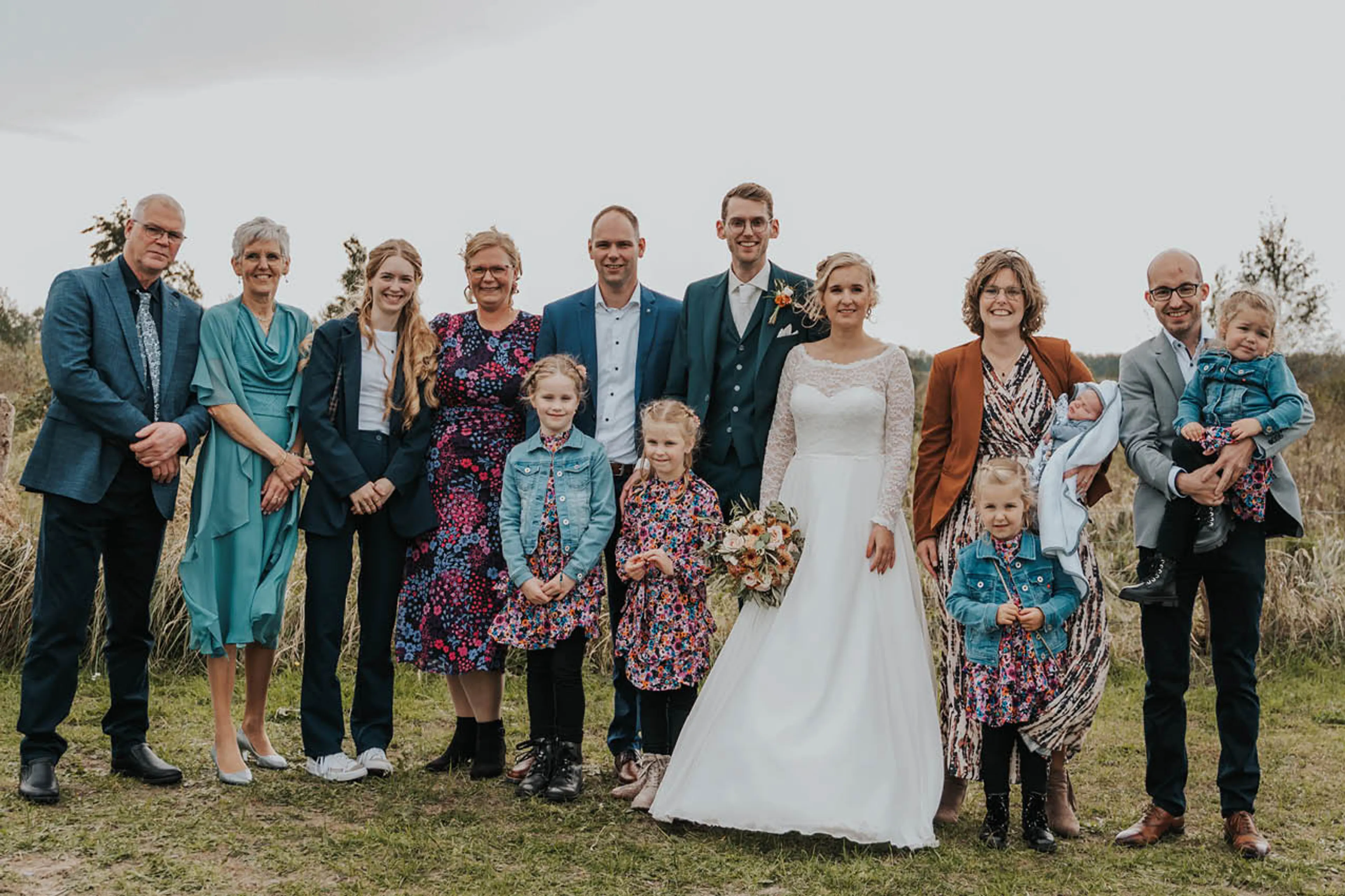 Volgorde van links naar rechts: Vader, moeder, jongste zus, schoonzus & oudste broer, Sybren & Anne, Aukje & Hielke