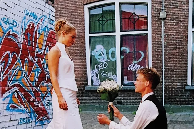 Totdat hij een deur opende en ik de kamer binnenstapte. De kamer was bedekt met rozenblaadjes en romantisch verlicht met kaarsen. En daar stond Duurt, in het midden van dat romantische tafereel, met een grijns van oor tot oor, vragend: “Wil je met me trouwen?”