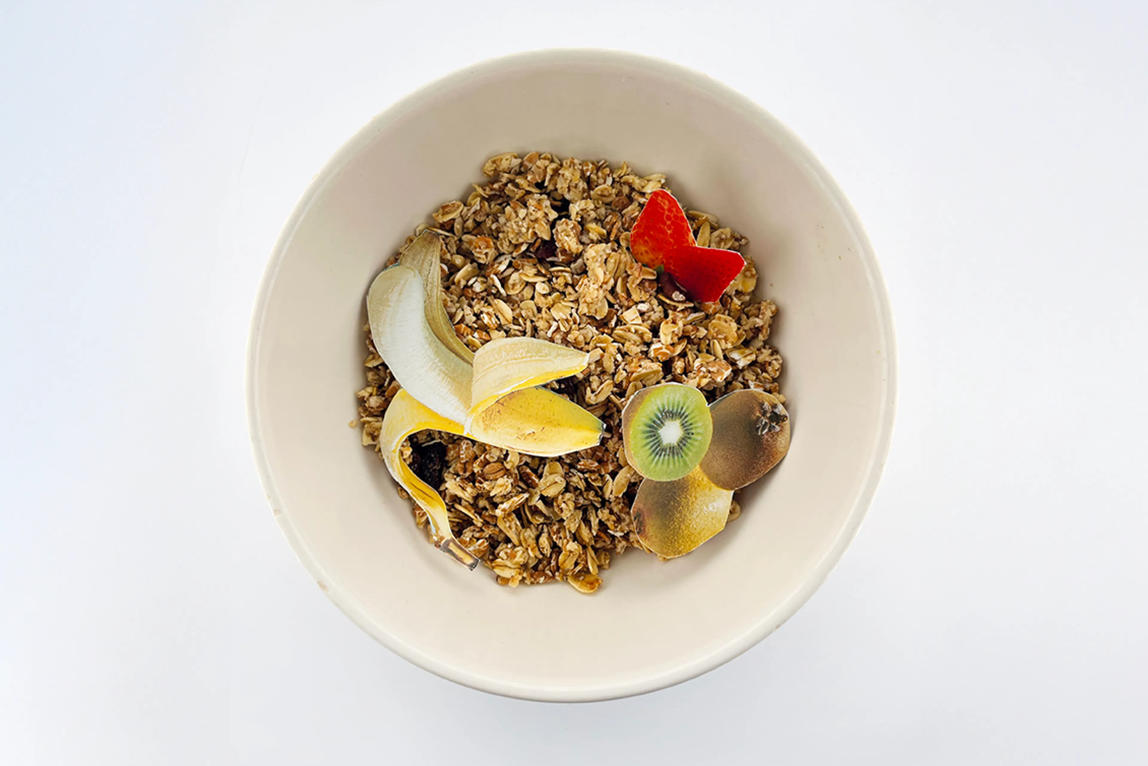 “Graag gedaan”, lacht hij. Maar, legt hij uit, voordat de pecannoten, rozijnen en cranberry’s een huwelijk vormen met de yoghurt en appel in mijn ontbijtkom, hebben ze een wereldreis afgelegd. Bob somt moeiteloos op: “De abrikozen komen uit Turkije, de rozijnen uit Chili, de papaja, ananas en kokos uit Thailand, de cranberry’s uit de VS en de havervlokken… volgens mij uit Duitsland, maar dat zal ik even voor je navragen bij onze leverancier.”