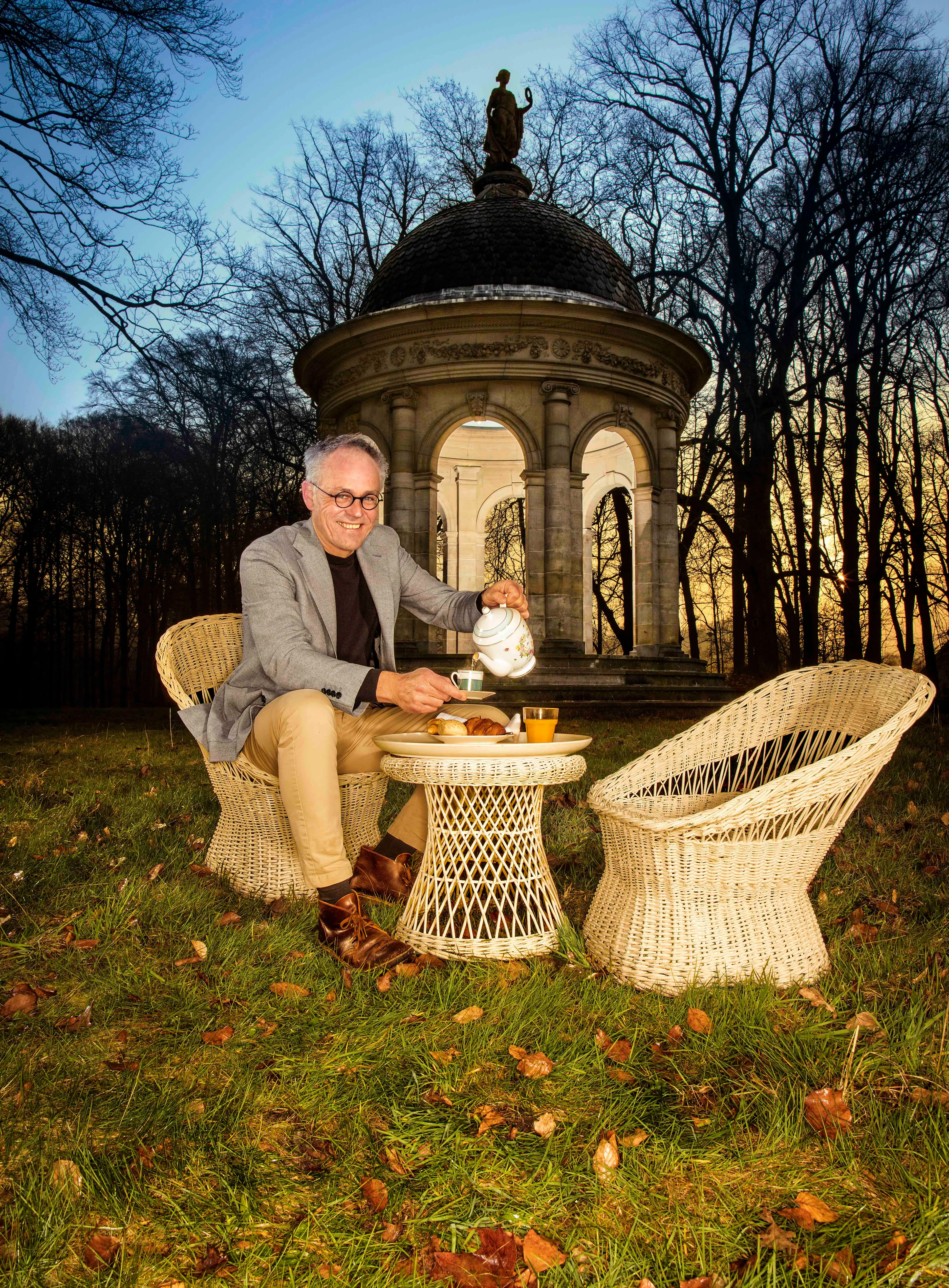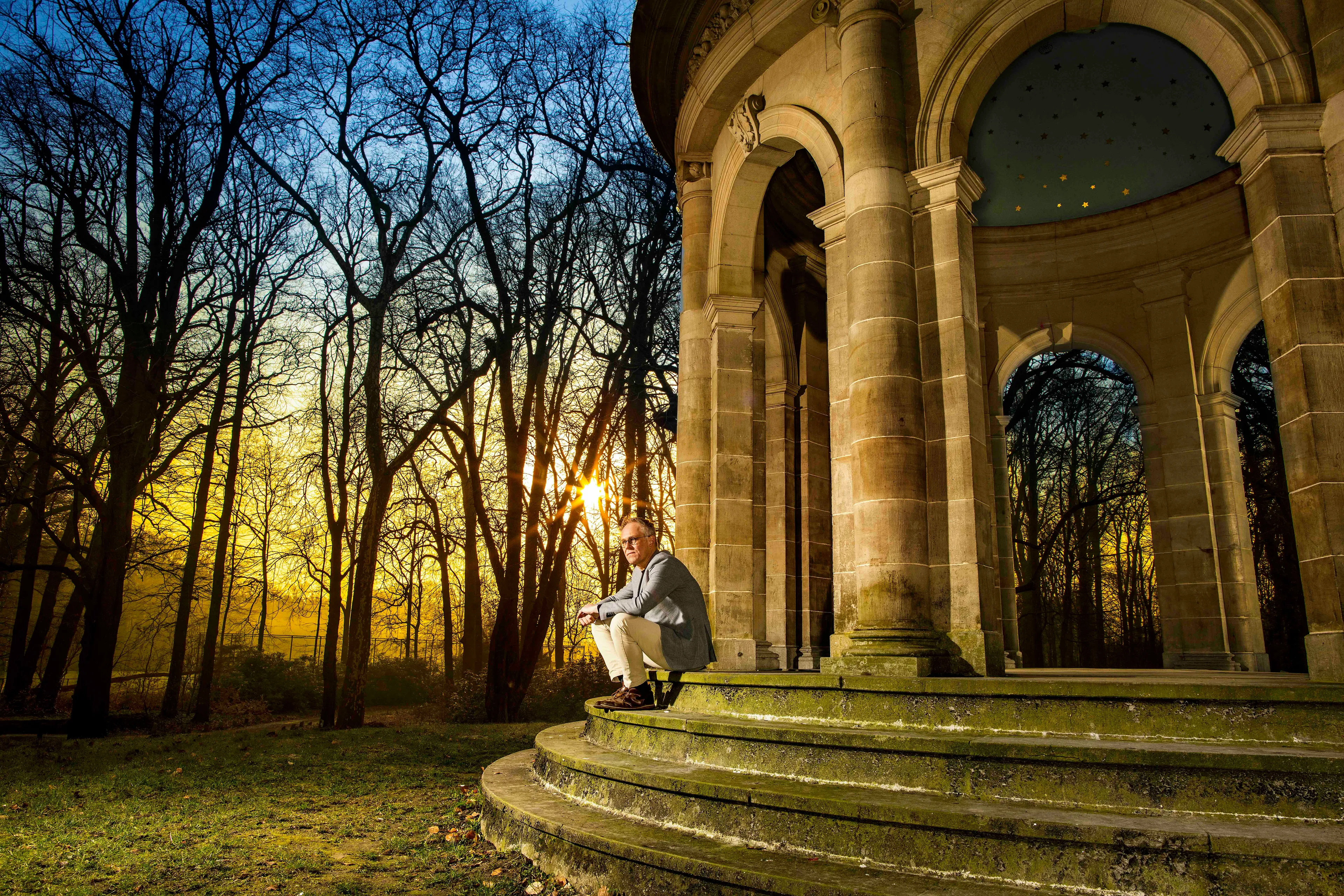 Voor we afscheid nemen, denkt hij nog even terug aan de paasmorgens in zijn kindertijd. “Pasen beleefde ik altijd als magisch”, zegt hij met een grote glimlach. “Alsof Jezus’ opstanding niet tweeduizend jaar geleden, maar nog diezelfde ochtend was gebeurd. Pasen is voor mij lichtvoetigheid. Huppelen. Als ik die huppel van toen weer in mijzelf herken als het Pasen wordt, kan ik daar vrolijk van worden. Nog steeds. In de voorbereiding op Pasen, ruim zes weken, lees ik over de theologie van het kruis, is er veel stilte en muziek. En op paasmorgen? Iets lekkers bij het ontbijt met mijn gezin, zoals mijn moeder dat vroeger bij ons thuis ook deed, muziek aan, en iets aan mijn jongens laten voelen. Dit is alles wat je nodig hebt om te leven: dat het Pasen is. Die ‘huppel’ van de kerk op zo’n hoogtijdag gaat voor mij dieper dan de grootste kunst. Omdat ik het dan weer in elke vezel van mijn lijf voel: Hij leeft!”