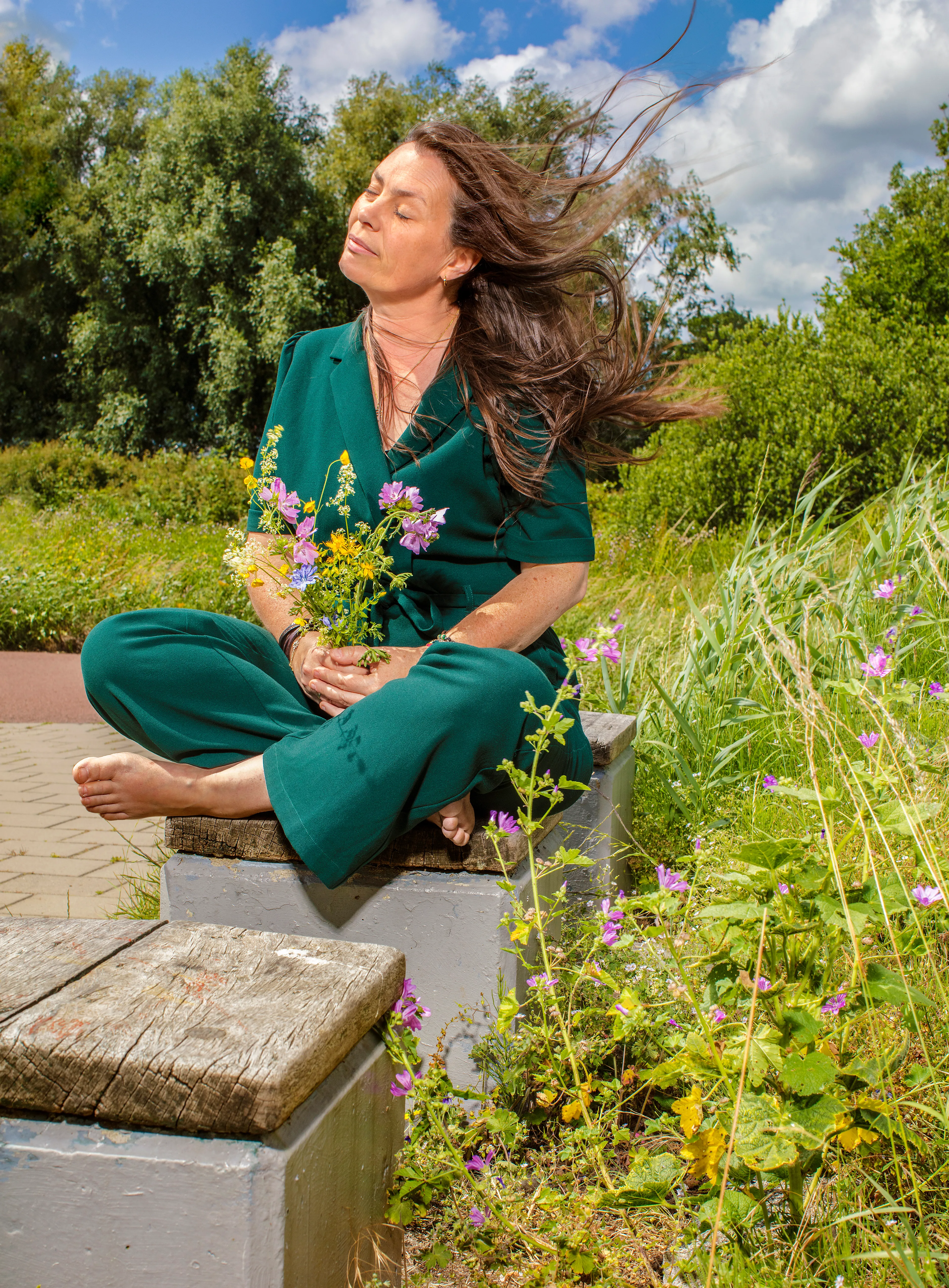 Buiten spelen zon en schaduw haasje-over, terwijl Marjolein fronst. “Soms denk ik: wat als ik plotseling zou genezen? Natuurlijk zou ik liever niet in de berm van het leven staan. Tegelijk heb ik ontdekt hoeveel schoonheid er ook om je heen te vinden is. Sinds 1 januari heb ik elke dag een madeliefje geplukt, hier in de buurt, om daar steeds weer bewust bij stil te staan. En juist door mijn long covid heb ik ontdekt: als je langzamer loopt, zie je zoveel meer.”